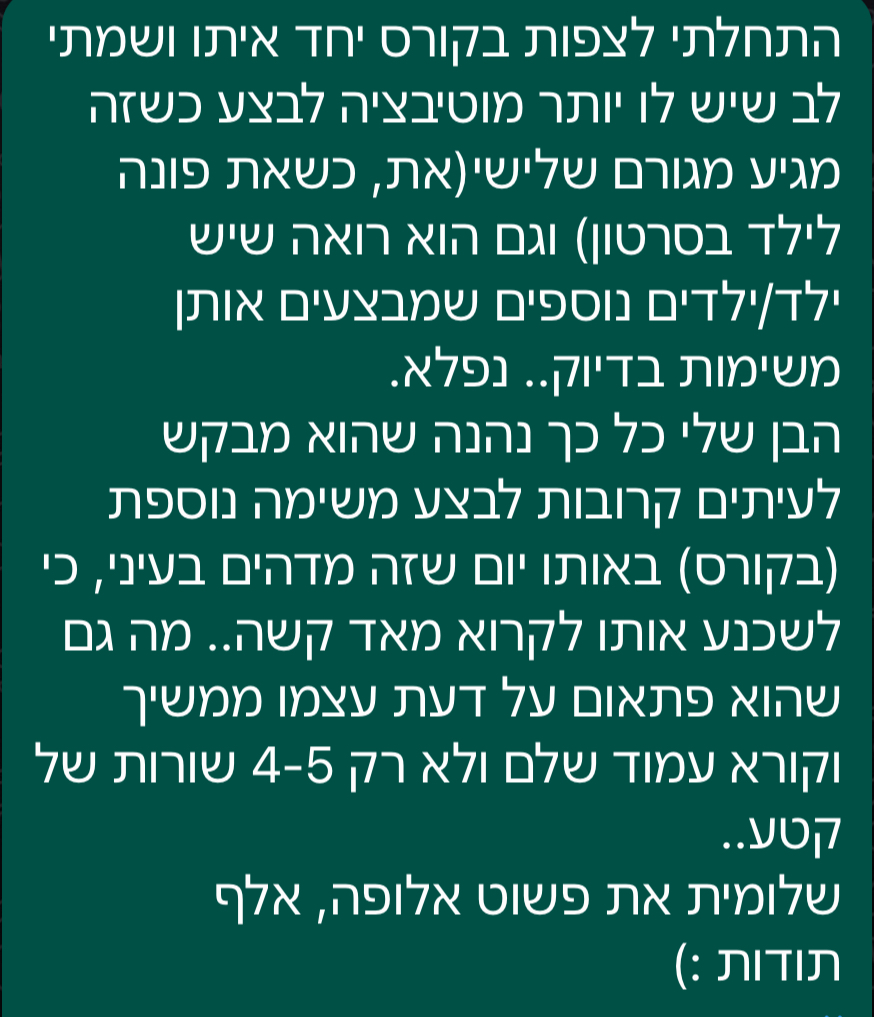 "אין לנו זמן לשבת איתו כל יום, האם הקורס מתאים עבורנו?"